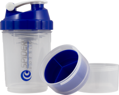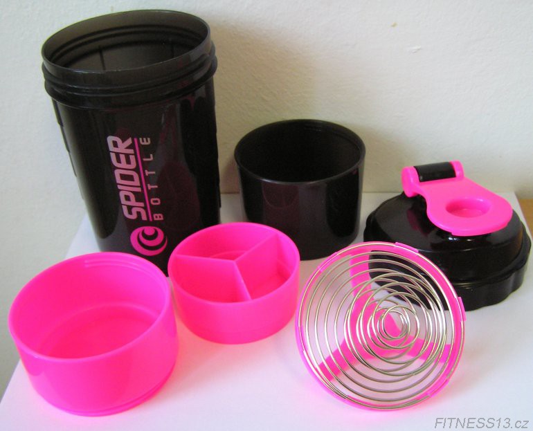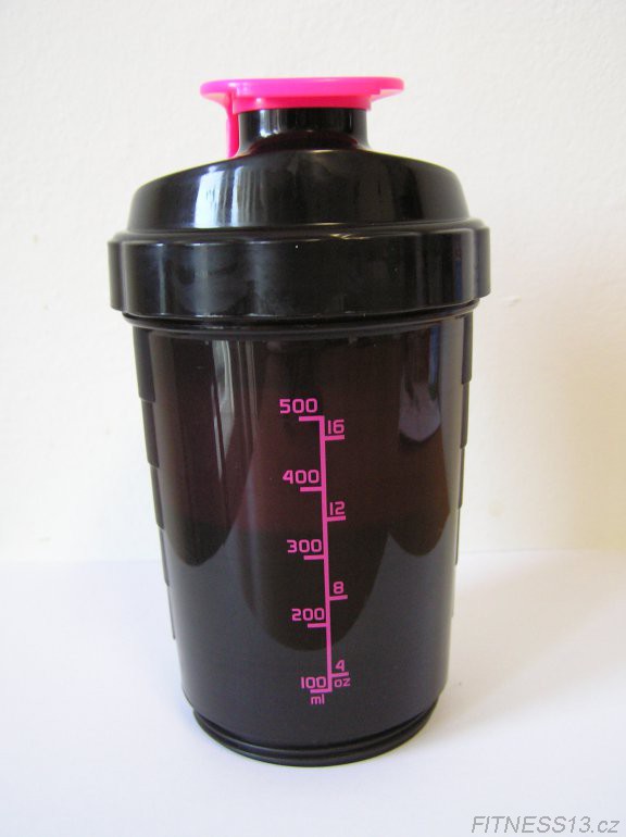 Šejkr je velice praktický a jednoduchý, skládá se ze tří částí - klasického šejkru o objemu 500 ml, dále ze samostatné nádobky na prášek o objemu až 100 g a samostatné nádobky na tablety či kapsle. Tabletový, přihrádkami rozdělený zásobník lze také upravit a použít čistě jako druhý rezervoár na proteinový, sacharidový prášek či kreatin.